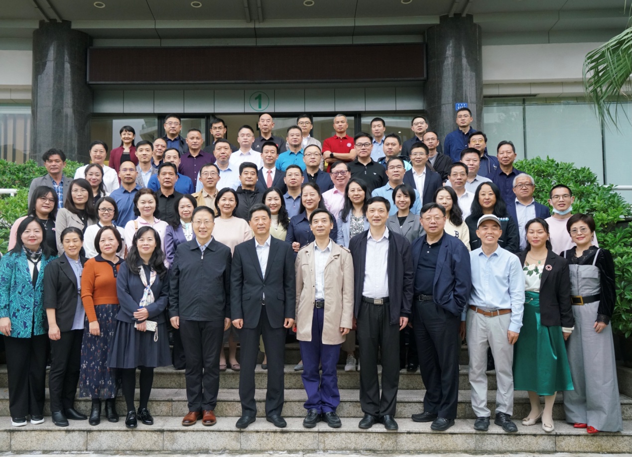 主任靳玉乐、学部党委书记李臣、执行主任李均、副主任赵明仁、曹晓明、各学科负责人、韩山师范学院的13位外聘硕导以及来自深圳市各级教育科学研究院及中小学的校外导师共计80余人出席活动。考虑疫情防控等因素,本次会议采取线上线下相结合的方式,既有线下精彩的现场演讲与互动,也有线上专家学者热情的远程分享。