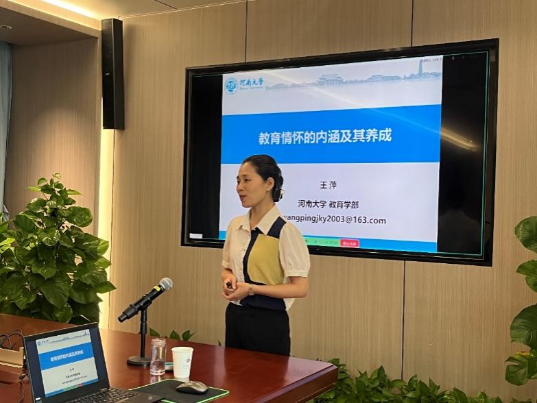 最后,王萍引用了教育家约翰·杜威的名言:“如果我们用过去的方法教育现在的学生,就是在剥夺他们的未来。”以此强调教育情怀的重要性和时代价值。她呼吁教师们要不断学习、反思和实践,以培养和提升自身的教育情怀。
