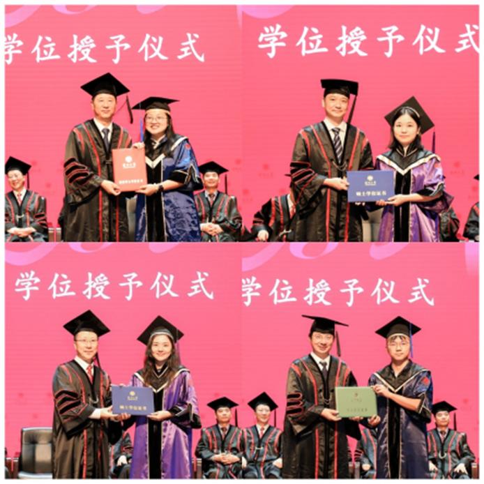 随后进入学位授予环节,靳玉乐、李均、赵明仁、曹晓明分别为毕业生颁发学位证书。