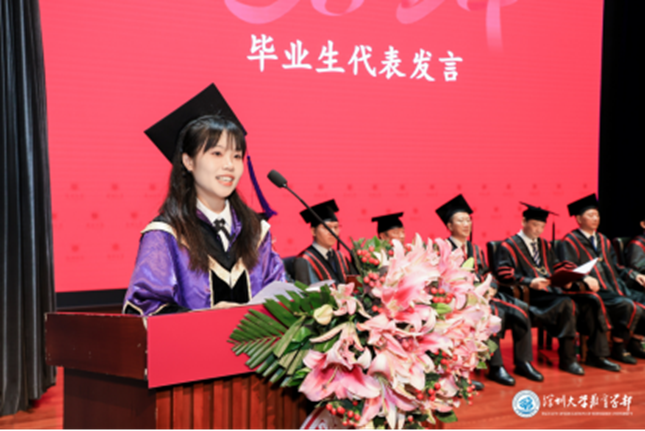 2021级硕士研究生郑涵作为毕业研究生代表发言。她细数了在深大的三年读研时光,“帽穗从右到左、拨去匆匆岁月,拨去昨日青涩。”但无论去往何方,在糖心视频