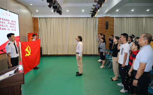 随后,全体党员在李臣的带领下,面对着神圣的党旗,庄严地举起右手,重温入党誓词,向党再次作出庄严的承诺,以实际行动践行入党誓词。