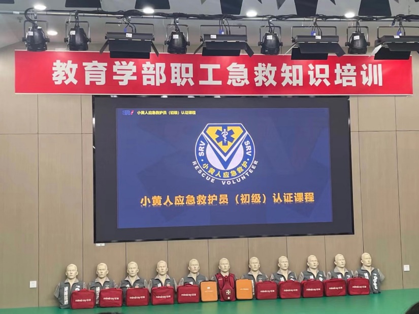 随后,参与此次培训的教职工接受了讲师团队的实操考核及理论笔试,考核合格者将获得“小黄人应急救护员(初级)证书”。